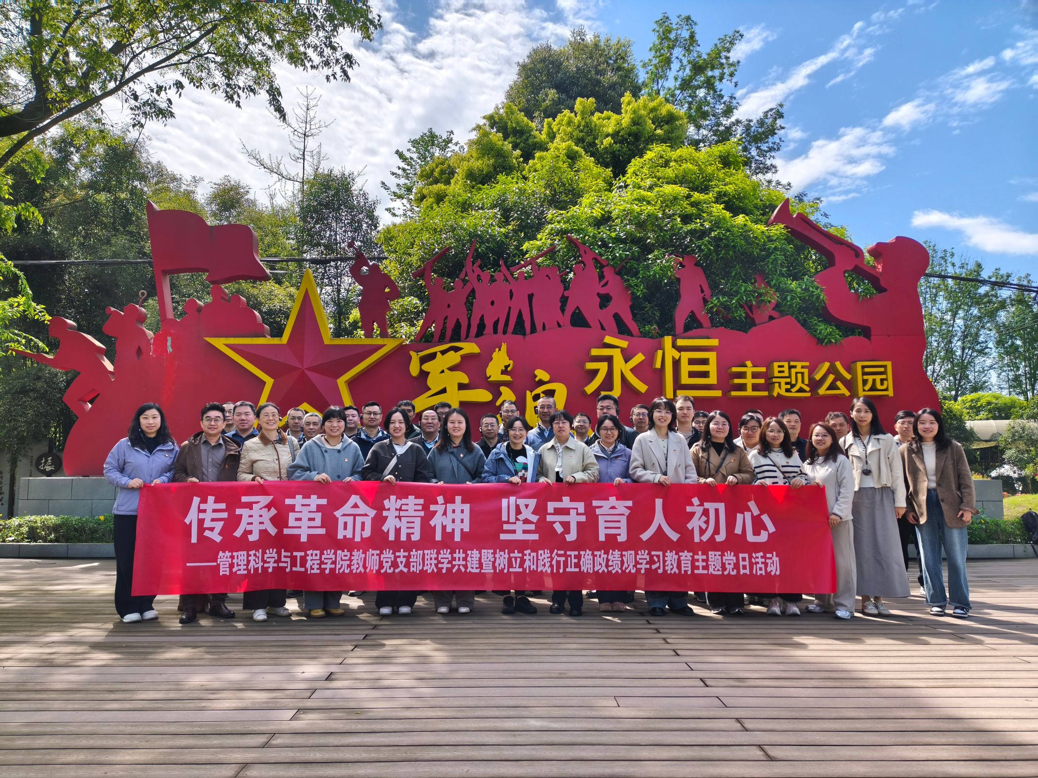 为扎实开展树立和践行正确政绩观学习教育,3月31日下午,管理科学与工程学院教师第一支部、教师第二支部组织全体党员干部共赴崇州军魂永恒(学习强国)主题公园,联合开展了以“传承革命精神 坚守育人初心”为主题的联学共建活动,在循足迹、悟思想中深刻把握正确政绩观的丰富内涵。